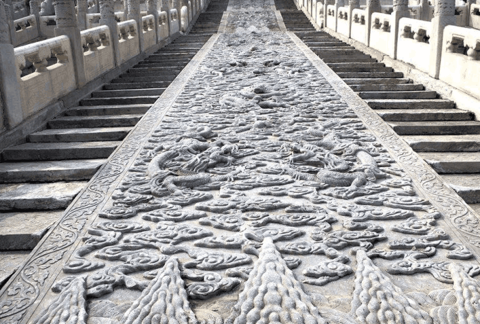 在故宫中,每一座宫殿的前后,都会有一个巨大的石制台阶,台阶正中是一个斜制的长条石,上面雕刻着龙、凤、海水江崖等各种图案,古人把这个东西叫做“灵墀”。而故宫之中,最大的一块灵墀,就在保和殿的后面,完全是由一整块石头雕刻而成,这块石头重达300多吨,开采自北京房山,在雕刻之后,被称为“云龙石雕”。古代没有起重机,没有大卡重汽,怎么就把这么一个大家伙,从房山运到了北京城的中心?
