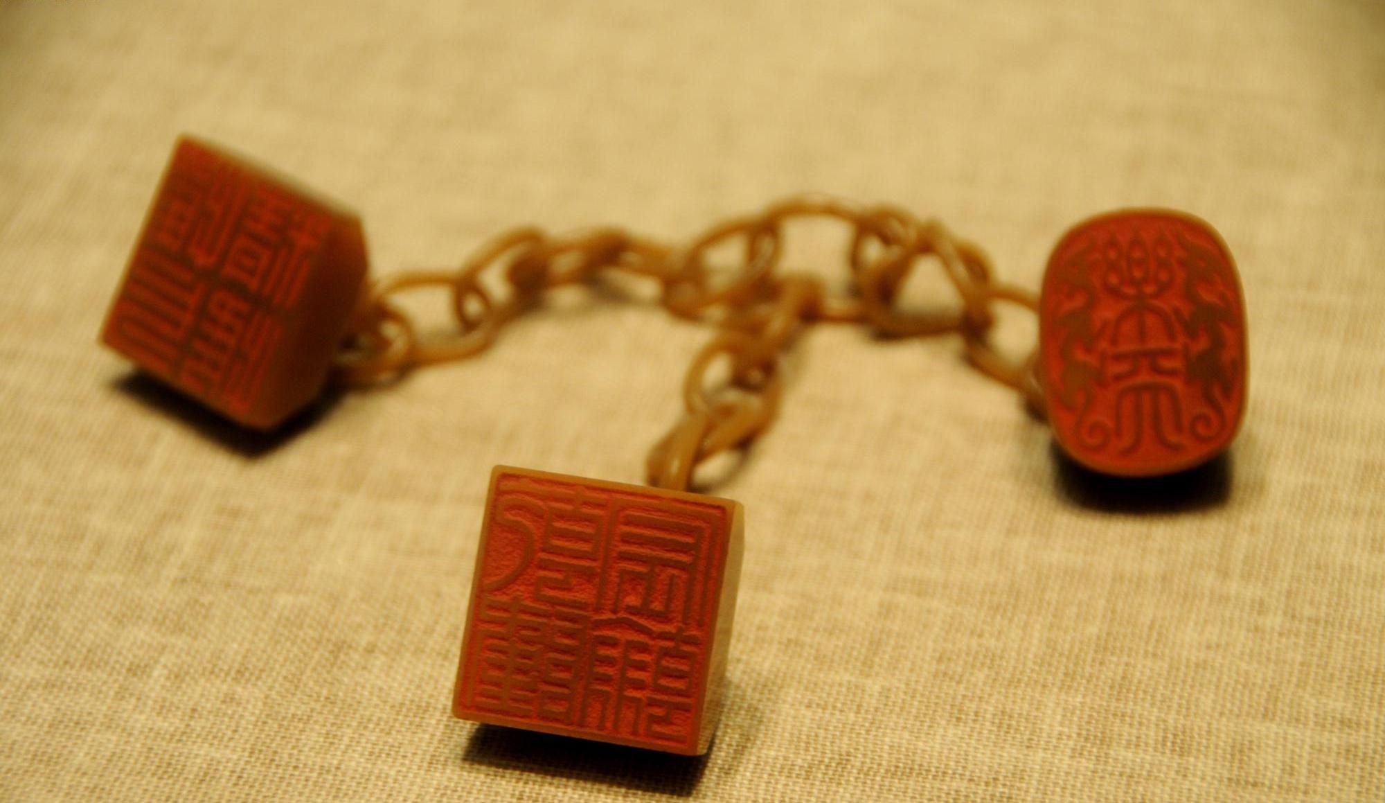 清代乾隆年间的田黄三连印,北京,故宫博物院。