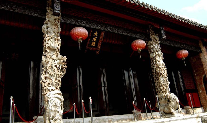 贵州省安顺市文庙内的建筑群以石雕精美而闻名遐迩,有“石雕艺术殿堂”之美誉,文庙大成殿前有一对冠绝贵州、距今已600余年石雕龙柱,它的雕刻技术和图案构思都达到了极高的艺术境界。据悉,这对石雕龙柱始建于明初,其艺术品味极高。(原创稿件 谢绝转发 )