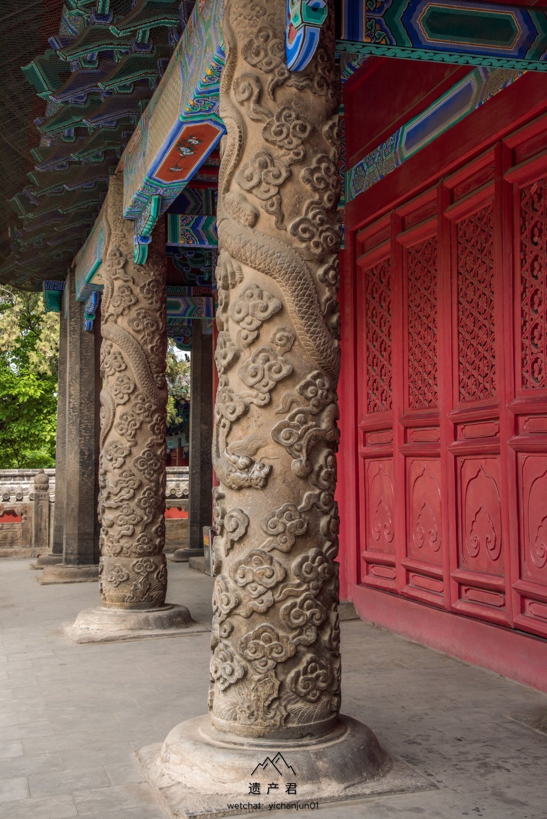 > 曲阜颜庙的石雕盘龙柱