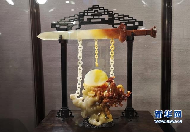 特别金奖获奖作品、寿山芙蓉石雕刻作品《卧薪尝胆》。新华网 刘丰 摄
