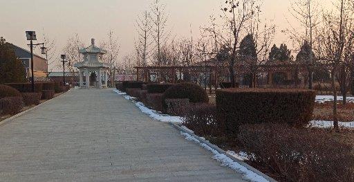 走进入园处也全是用汉白玉做的门楼,六根刻着浮雕大柱子,很是气派。中间牌匾写“中华石雕艺术园”七个金黄大字。门楼顶是仿二坡瓦式顶,脊顶还雕有两条立龙。进到里面欢迎的用汉白玉雕的两个美丽的仙女。在往里走是用弧形钢管做的拱廊。两边都是草坪和景观树尽头是雕着龙和祥云镂空的大石头球,往南的尽头还有一个石雕的关羽,立着大刀很威武。